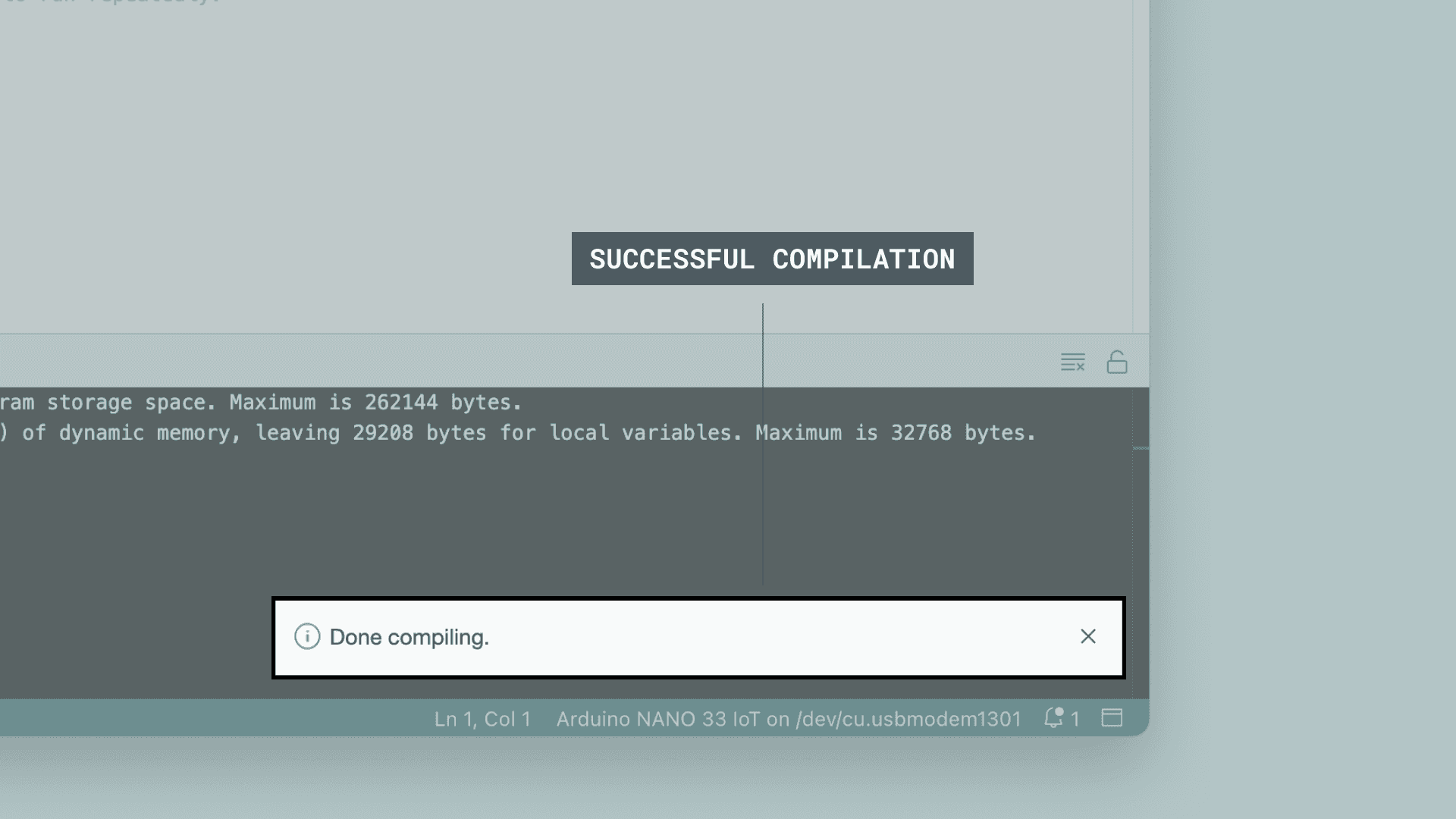 6. When it is finished, a notification pops up in the bottom right of your IDE window. Of course, sometimes there are some complications when uploading, and these errors will be listed here as well.