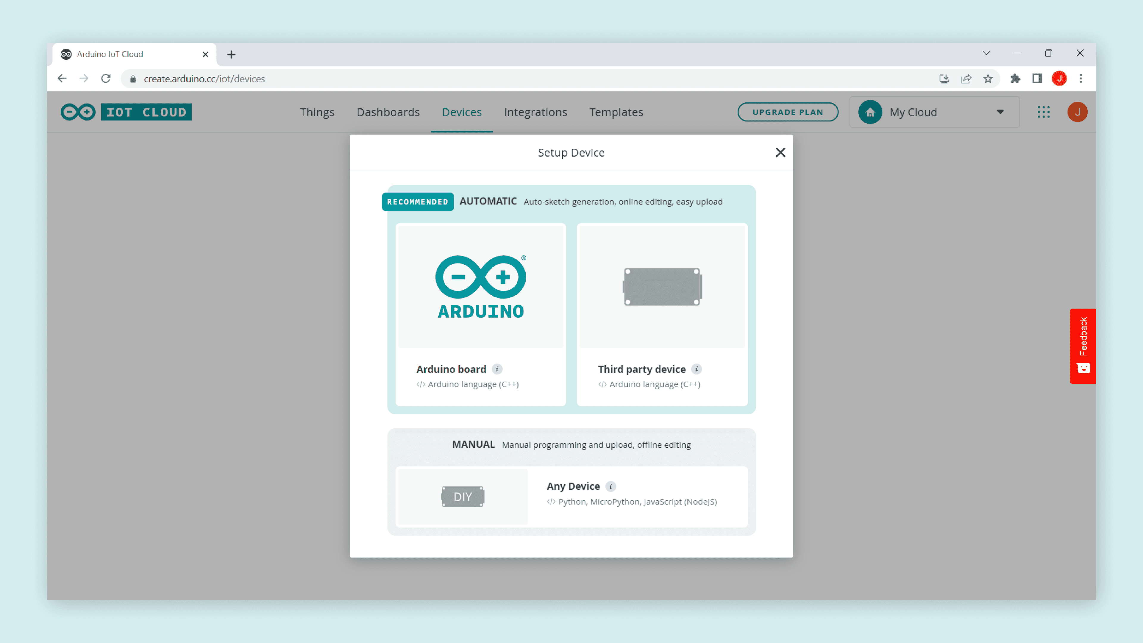 In case it is the first time you are using the Arduino Cloud: