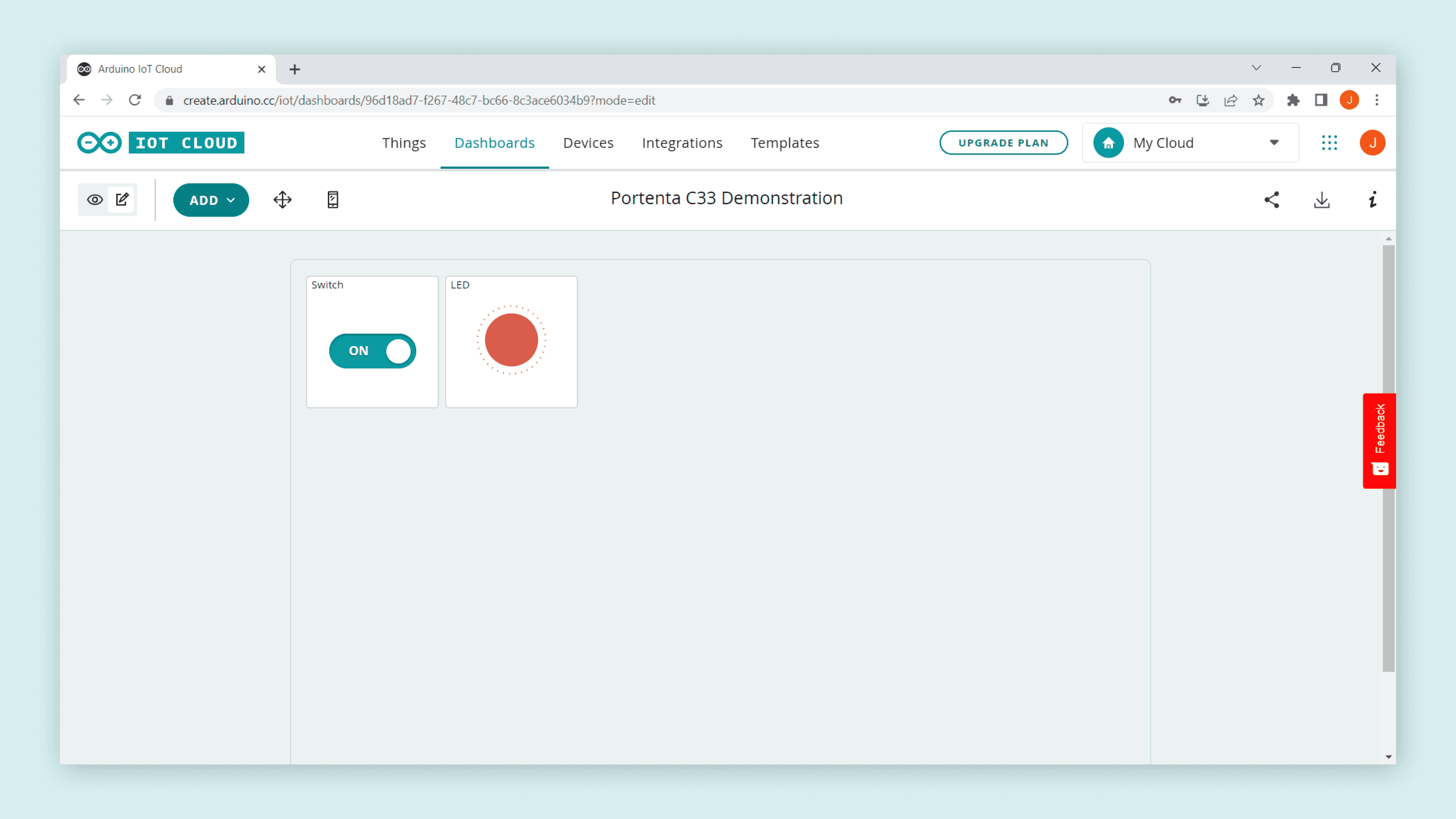 led variable in the Cloud Variables section. Navigate into Dashboards and select the BUILD DASHBOARD button; create a new dashboard and give your dashboard a name.Add the following widgets to your dashboard: