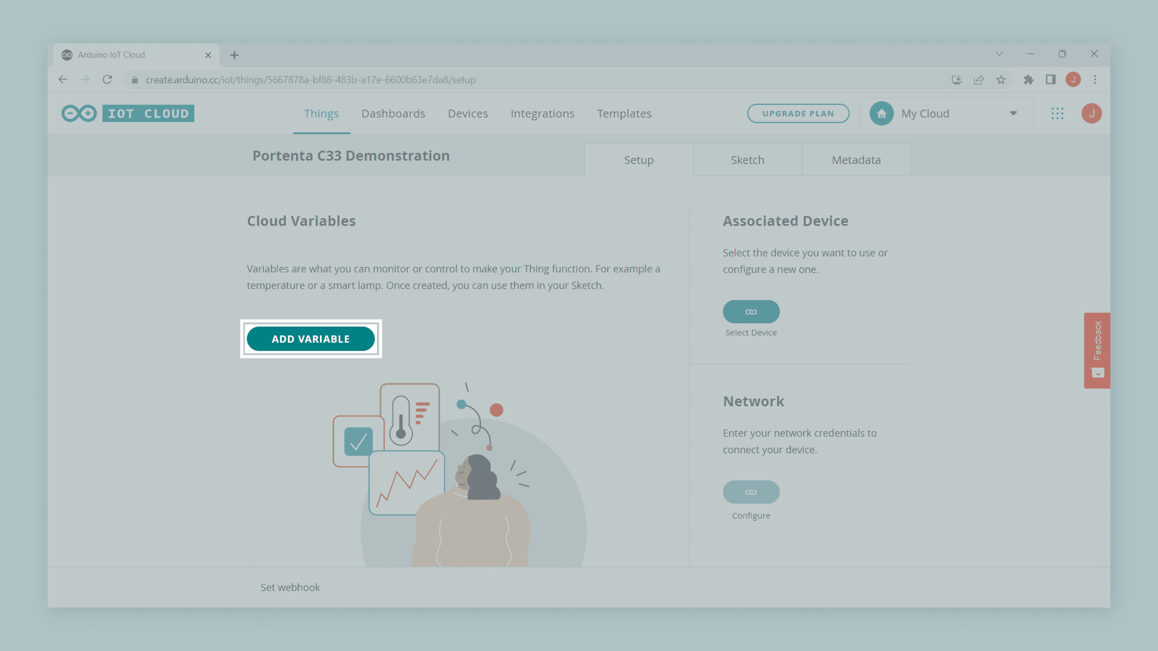 The project is now ready to add some variables to your "Thing"; navigate into Cloud Variables and click the ADD VARIABLE button.