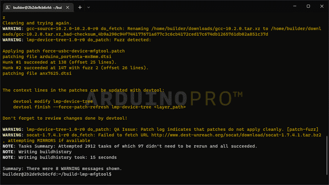 1bitbake lmp-partner-arduino-imageThis process may take ~7 hours depending on the build host